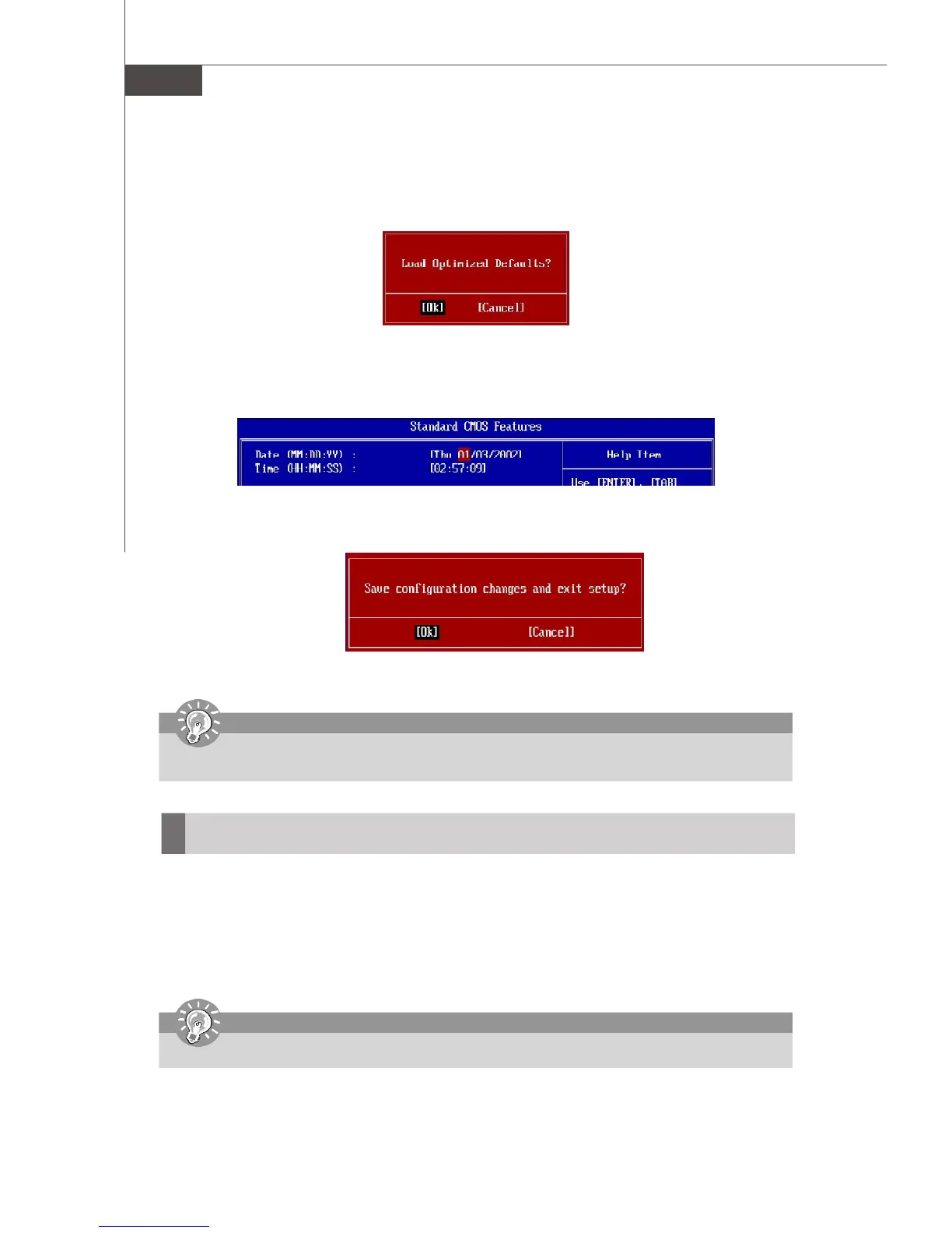 1. Load Optimized Defaults : Use control keys ( āā ) to highlight the Load Optimized Defaults field and press