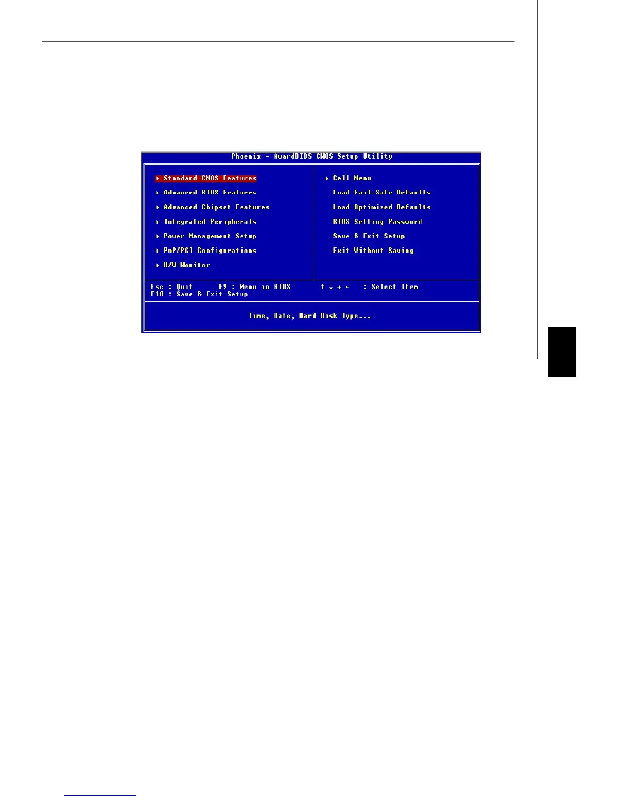 BIOS CMOS Setup Utility, le menu apparaît à l’écran. Le Menu permet