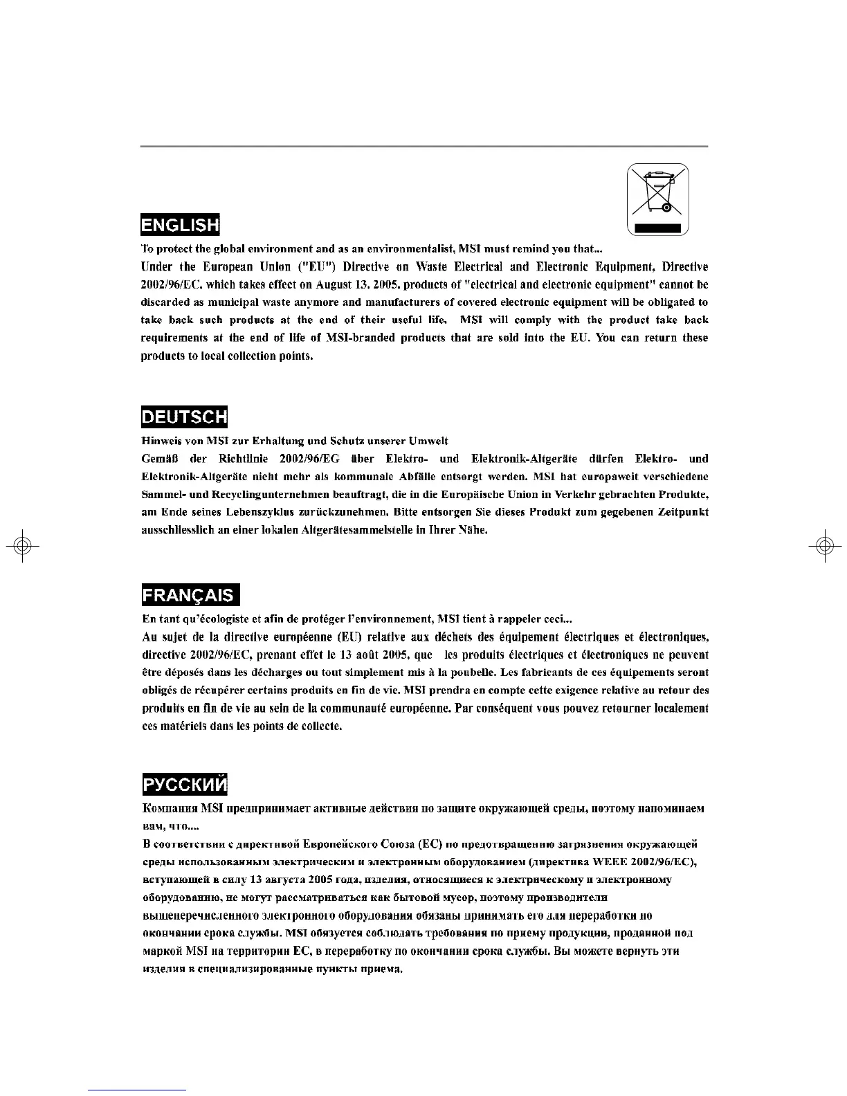 MSI MS-7242 - WEEE (Waste Electrical and Electronic Equipment) Statement