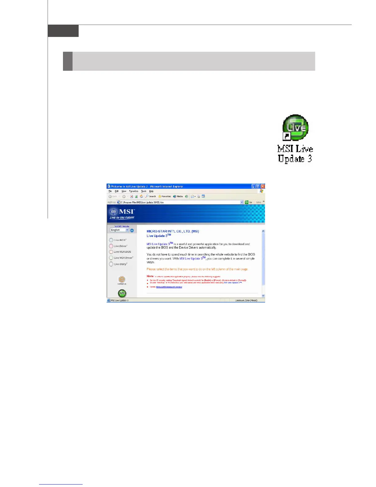 Update 3” application. After the installation, the “MSI Live Update 3”