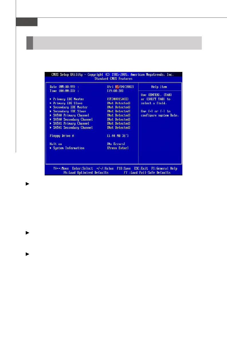The items in Standard CMOS Features Menu includes some basic setup items. Use