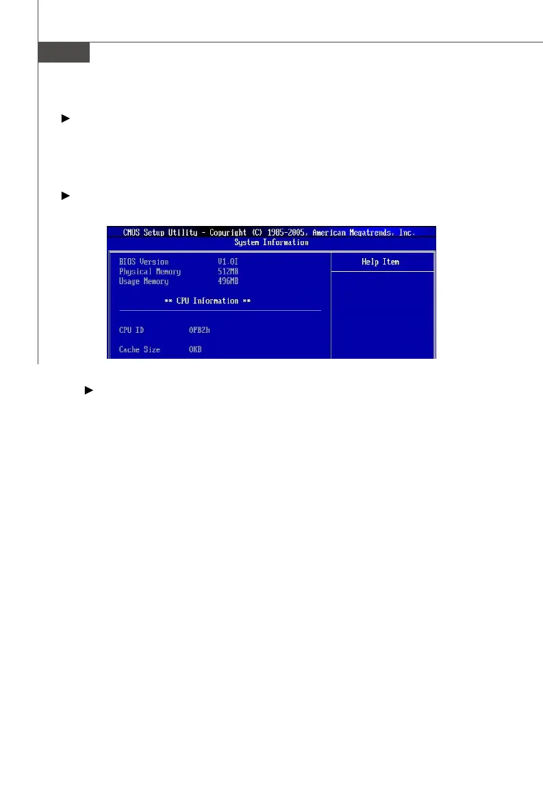 These items show the CPU information, BIOS version and memory status of your