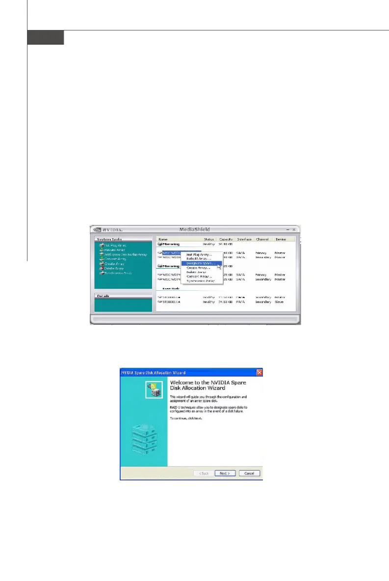 2. Select Designate Spare from the menu to launch the Spare Disk Allocation Wizard.
