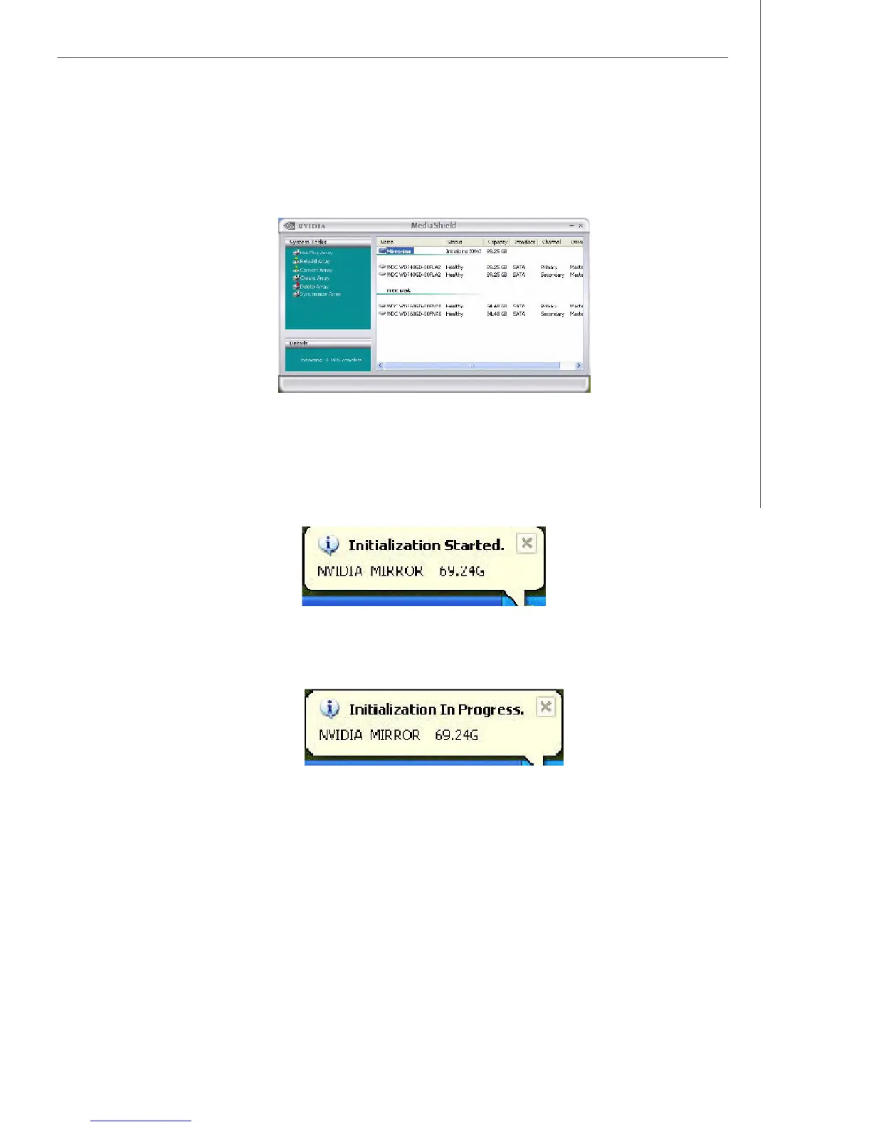 screen. The NVRAIDMAN windows shows the created RAID array as shown below.