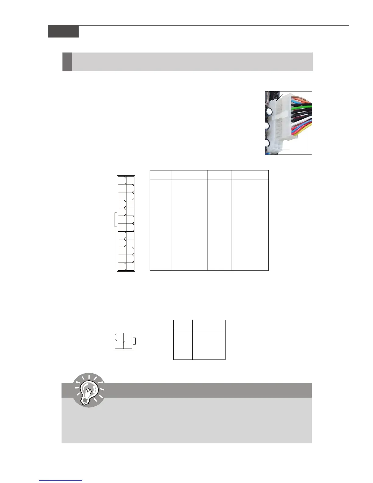 To connect the ATX 24-pin power supply, make sure the plug of the