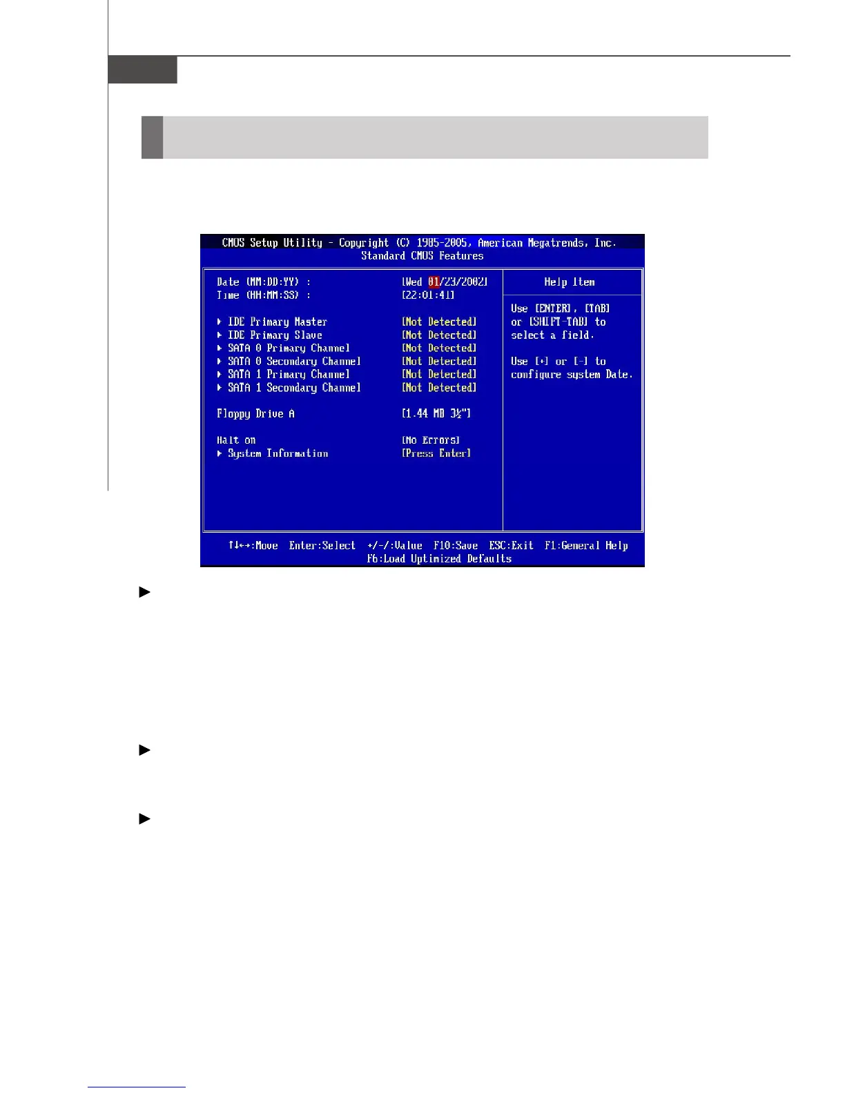The items in Standard CMOS Features Menu includes some basic setup items. Use