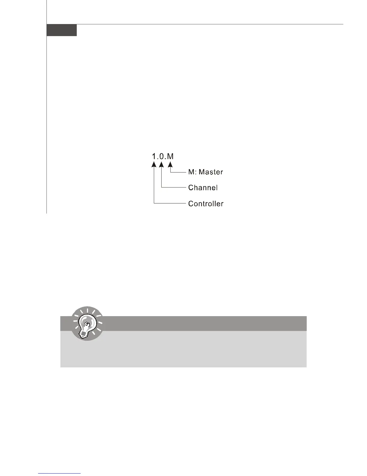 In the example above, 1.0.M means the hard drive is attached to Channel 2, Controller