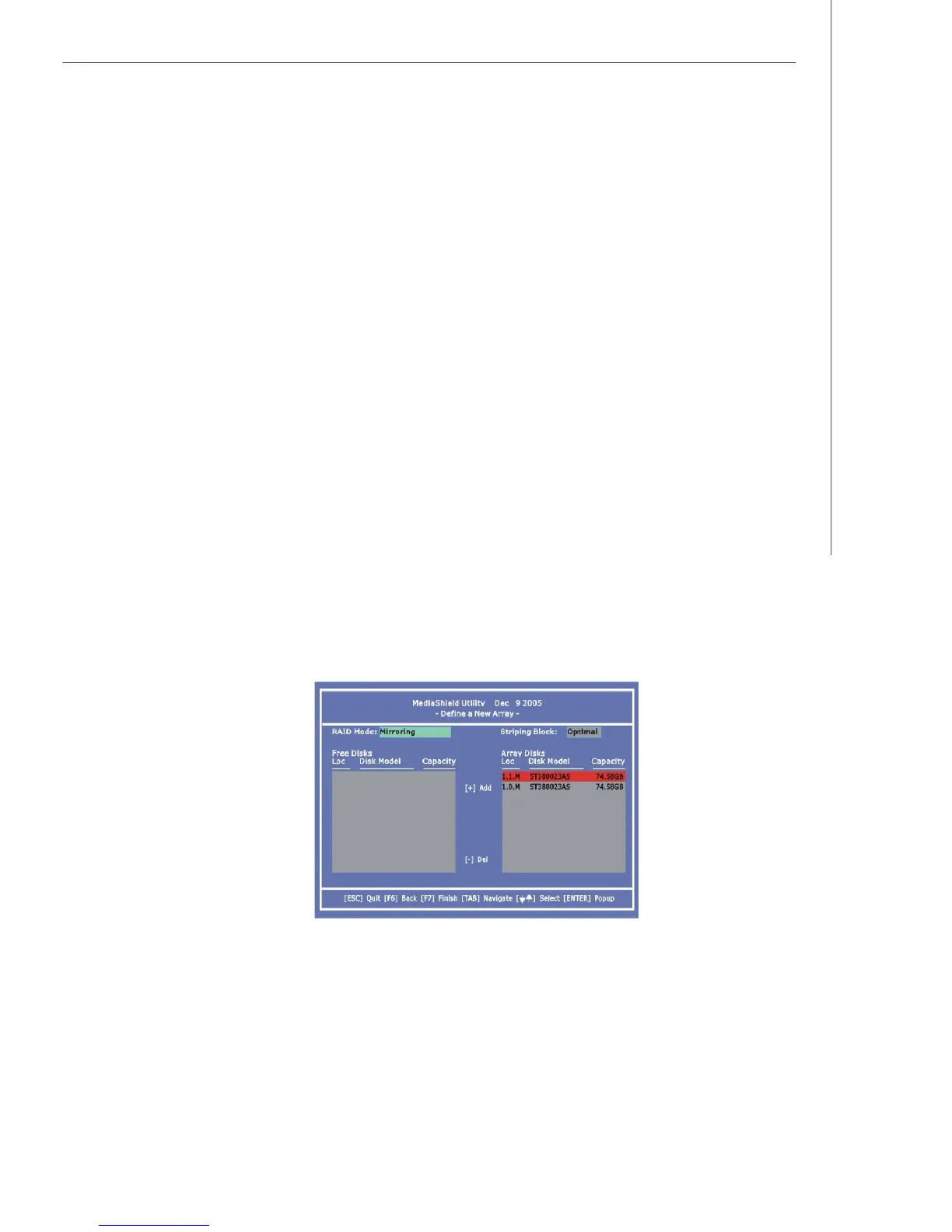 down arrow key until the mode that you want appears in the RAID Mode box—either