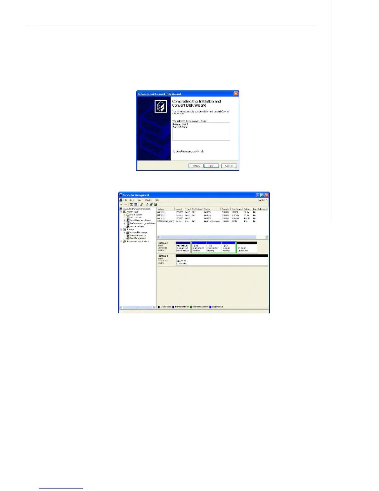 Next. The Completing the Initialize and Convert Disk Wizard window appears.