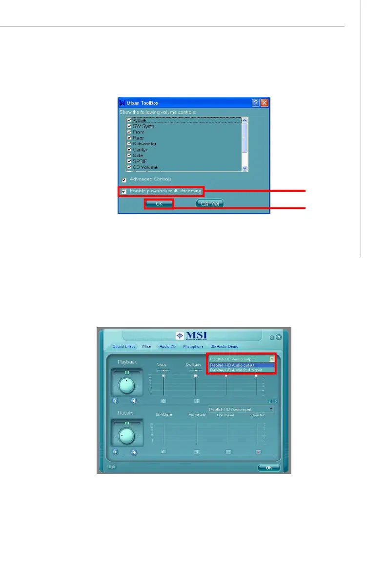When you are playing the first audio source (for example: use Windows Media