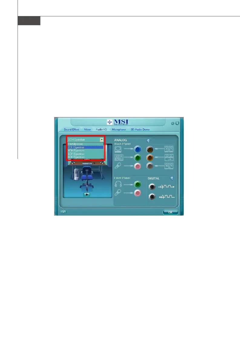 In this tab, you can easily configure your multi-channel audio function and speakers.