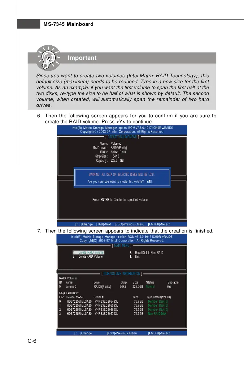 create the RAID volume. Press <Y> to continue.