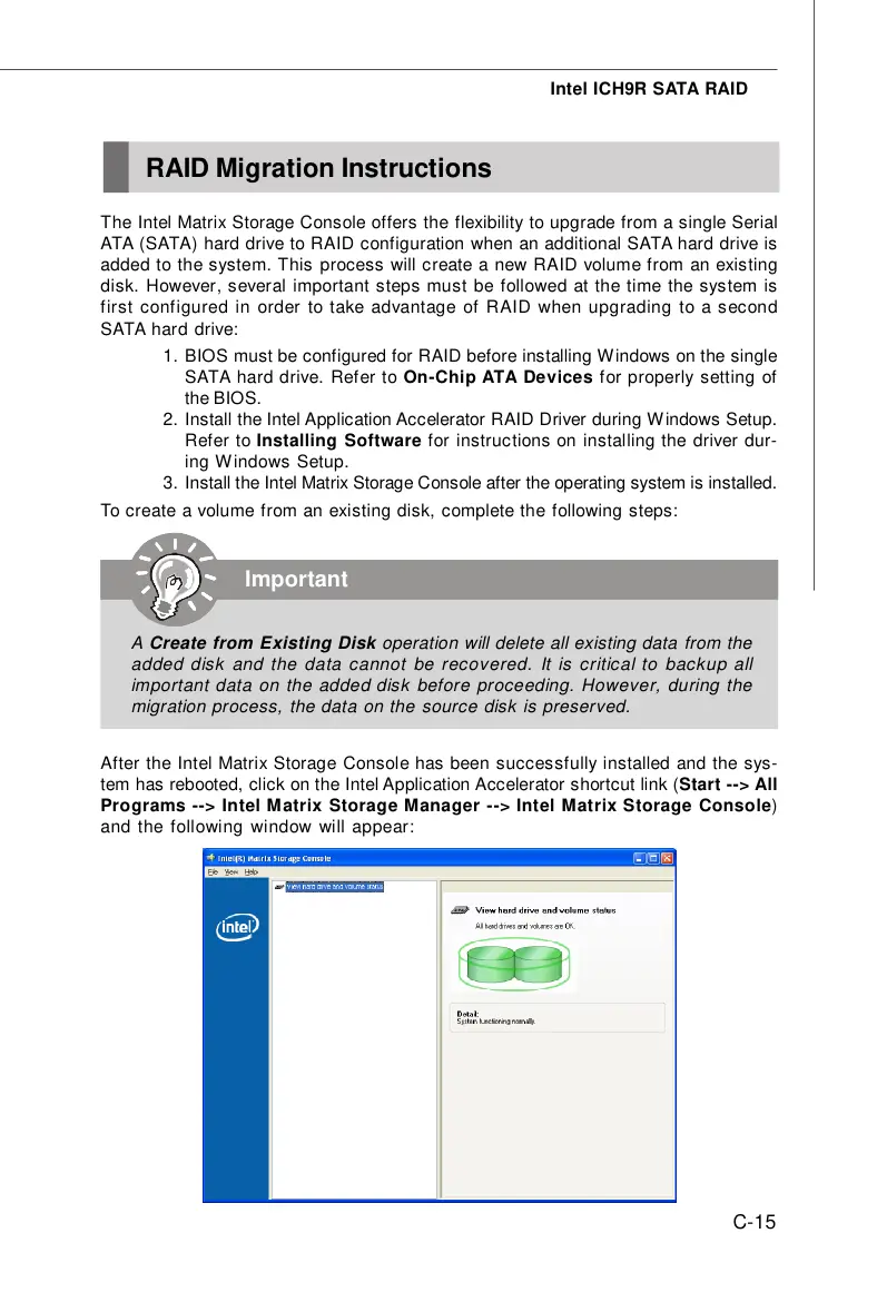 The Intel Matrix Storage Console offers the flexibility to upgrade from a single Serial