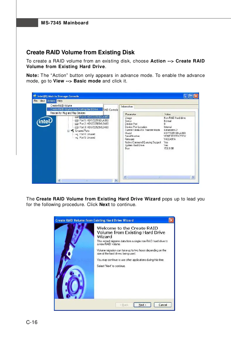 The Create RAID Volume from Existing Hard Drive Wizard pops up to lead you