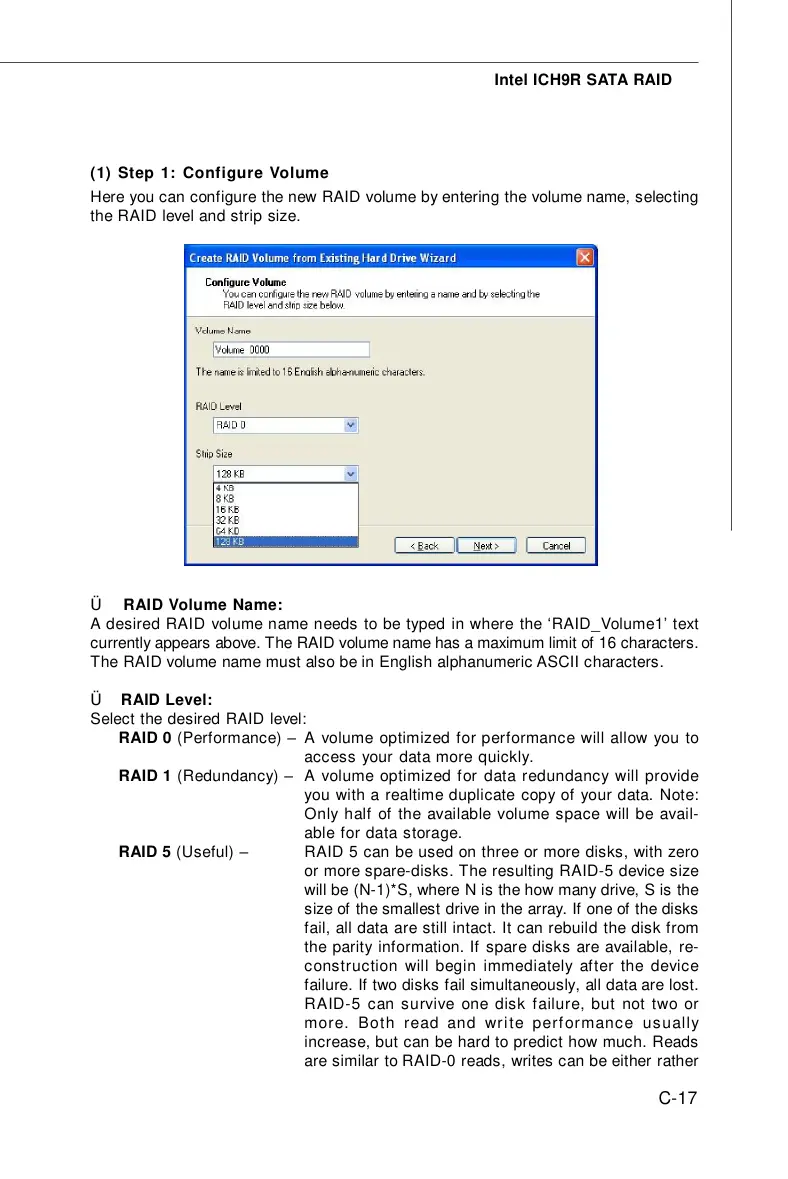 currently appears above. The RAID volume name has a maximum limit of 16 characters.