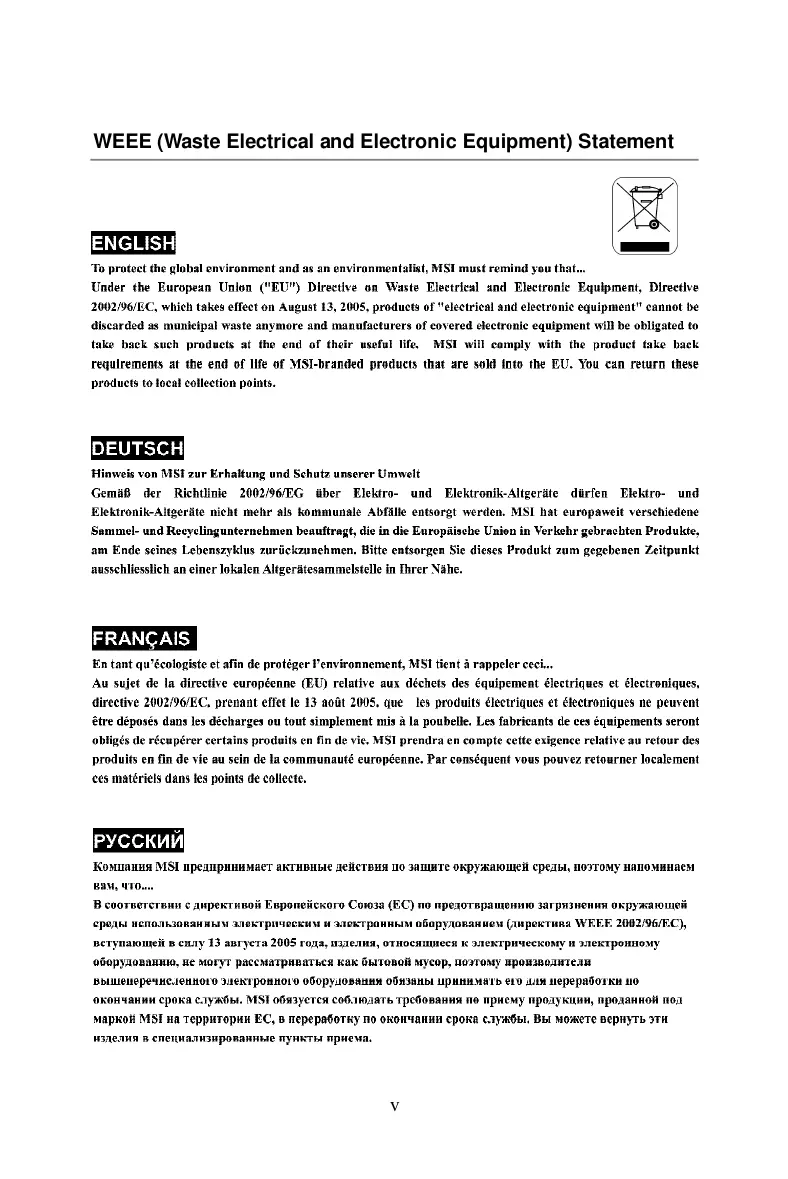 MSI MS-7345 - WEEE (Waste Electrical and Electronic Equipment) Statement