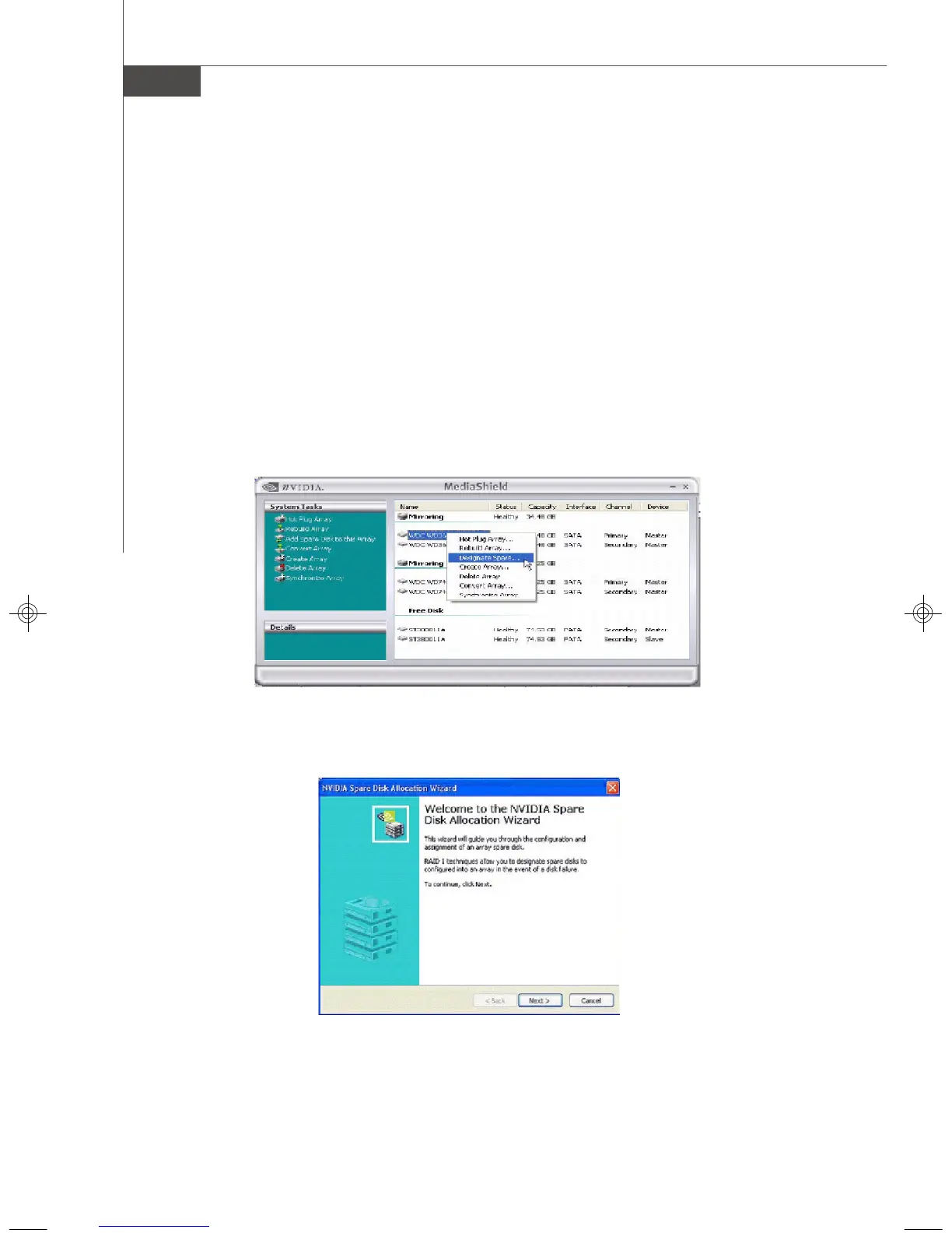 2. Select Designate Spare from the menu to launch the Spare Disk Allocation Wizard.