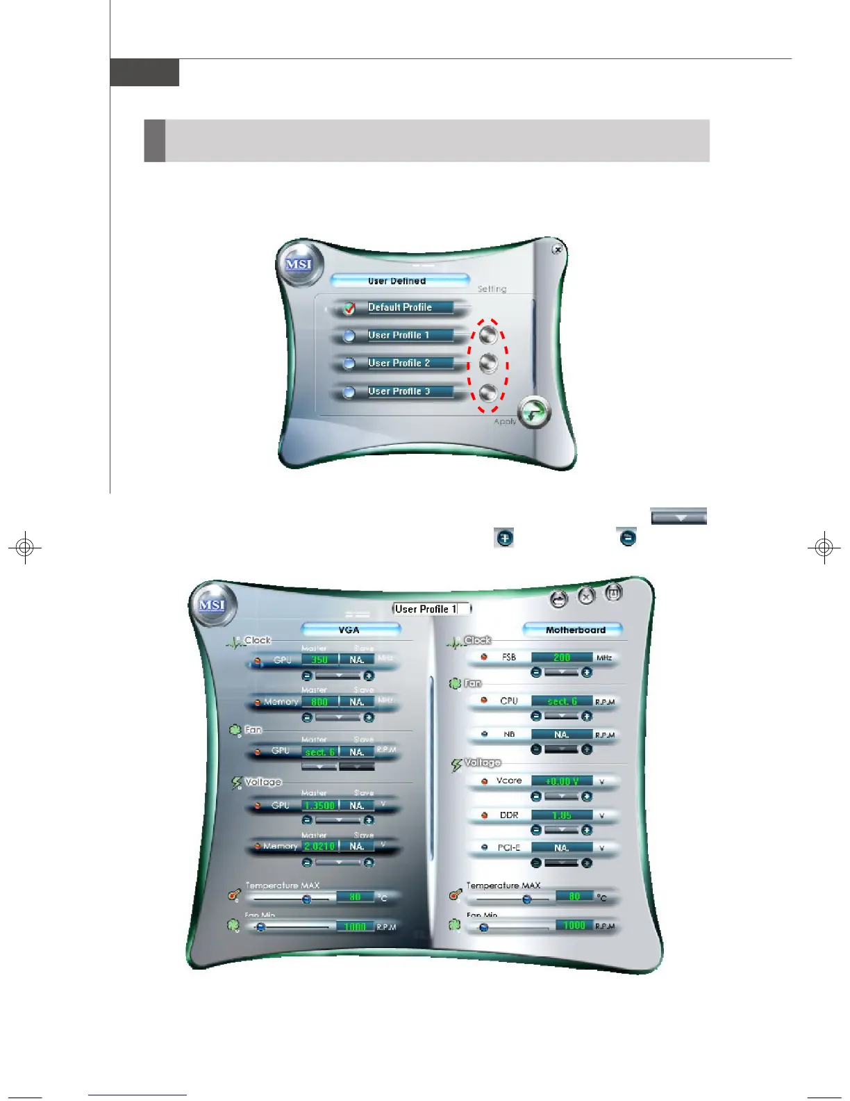 Here you can define the clock/ fan speed/ voltage by your need, click the