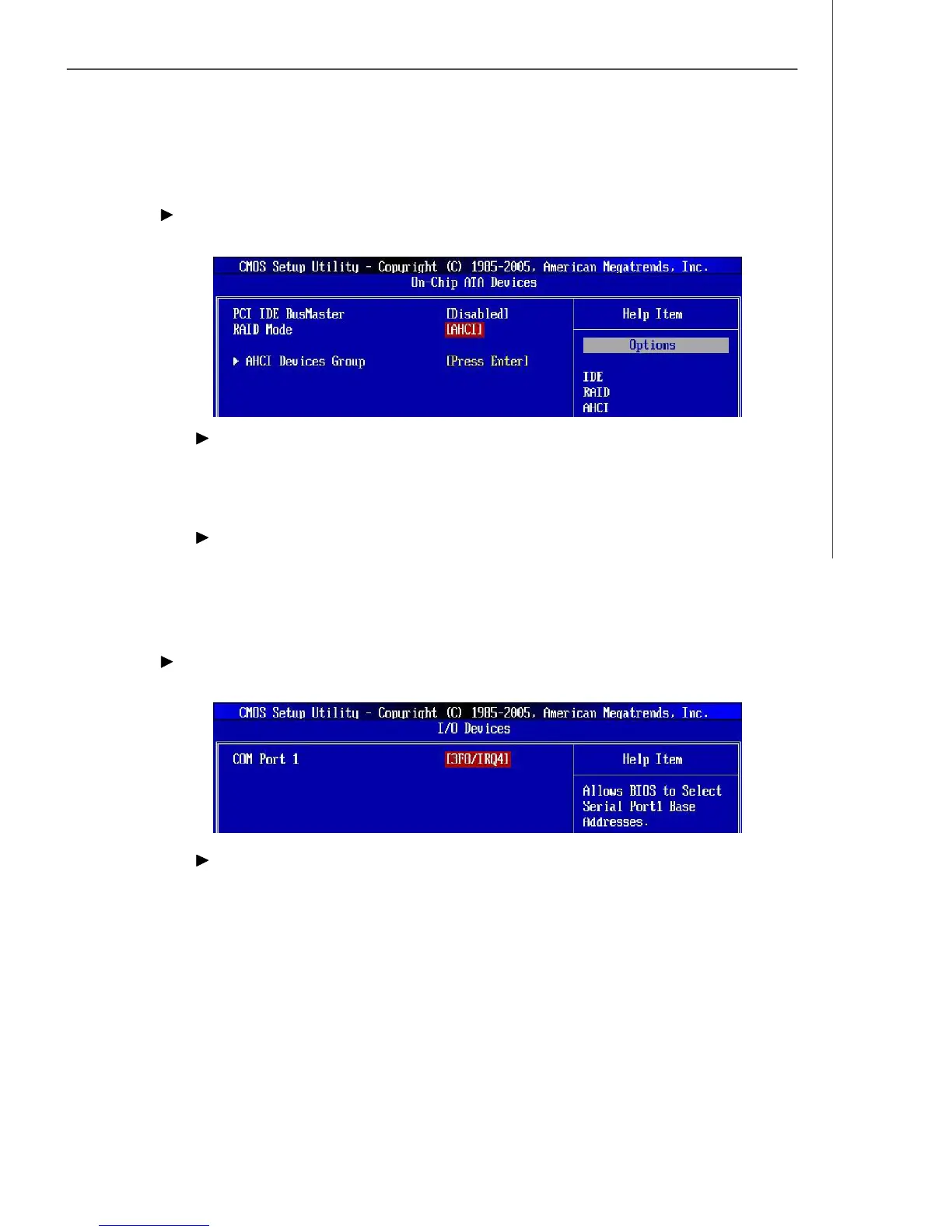 (COM 1). Selecting [Auto] allows AMIBIOS to automatically determine the correct