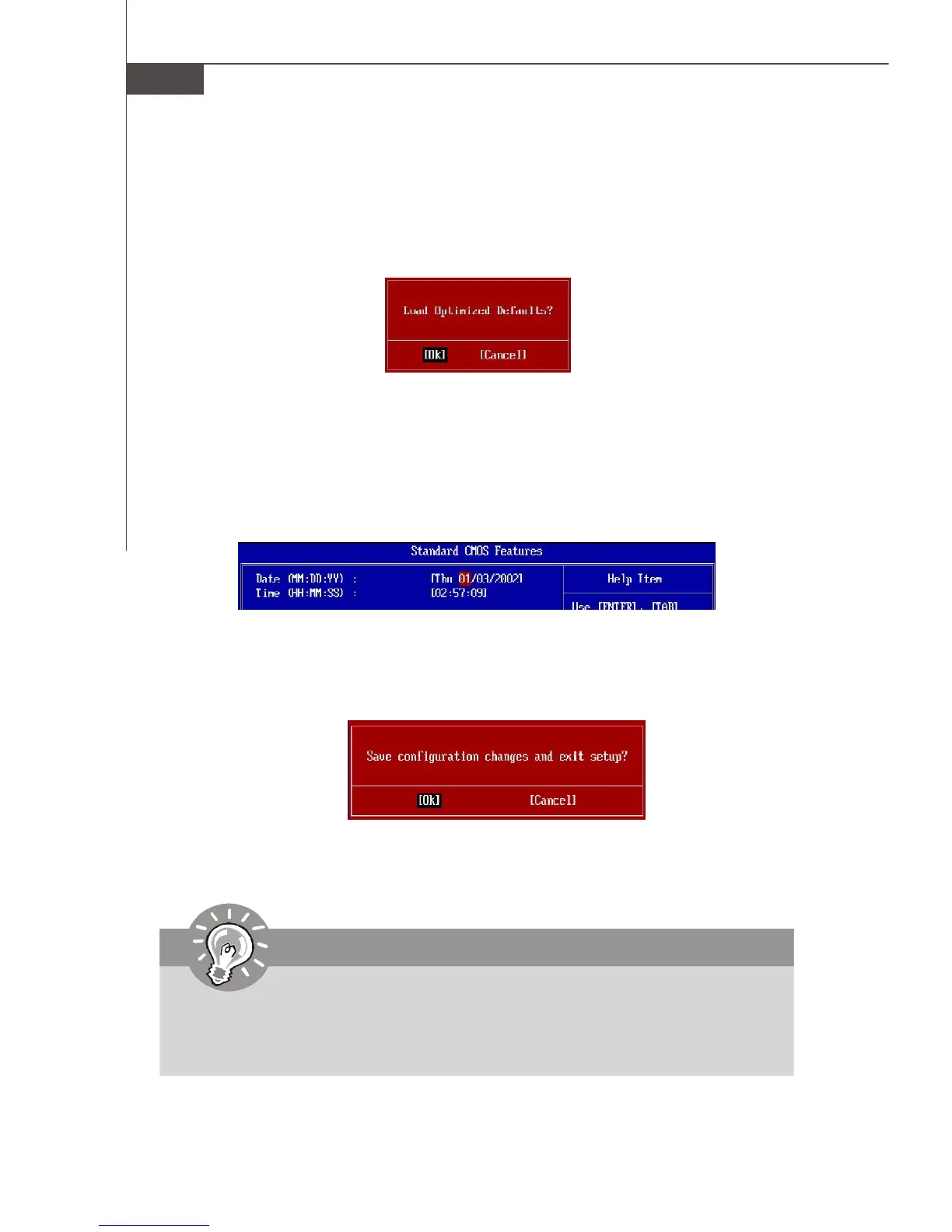 Drücken Sie [okay], um die Standardannahmen für optimale System Leistung zu