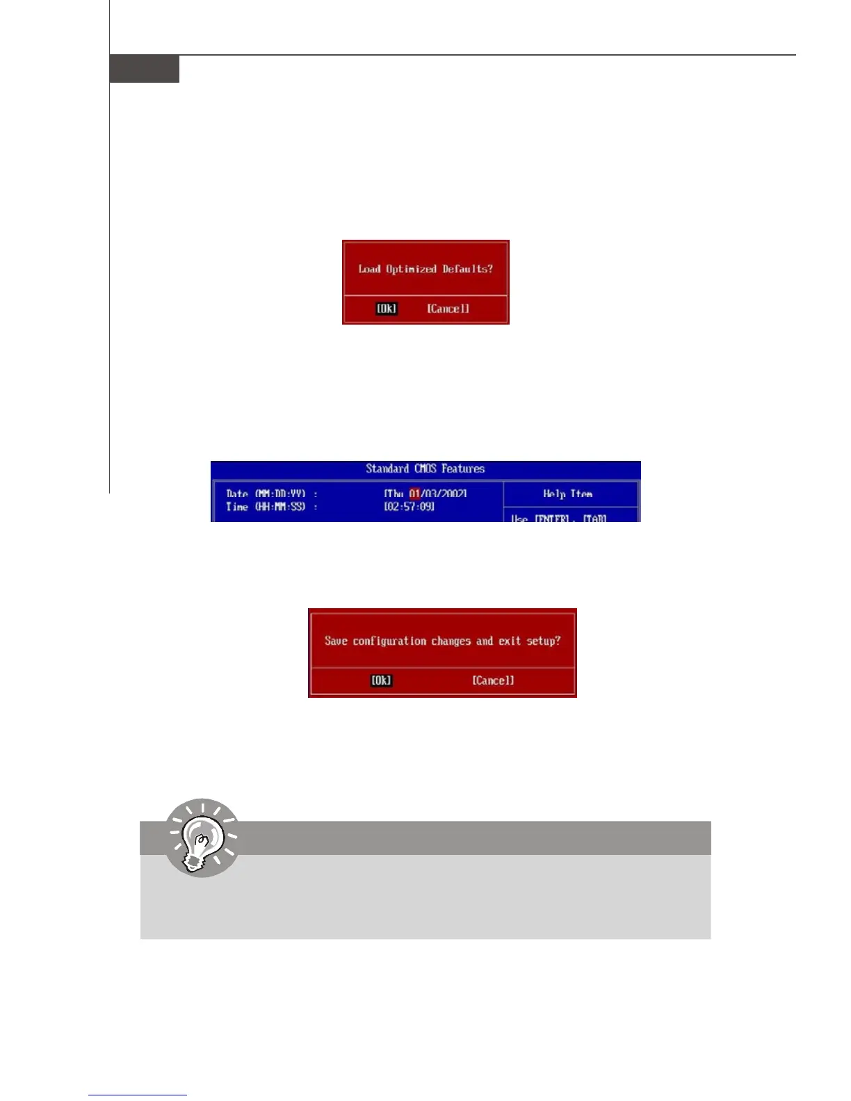 1. Load Optimized Defaults (Установить оптимальные настройки): Клавишами