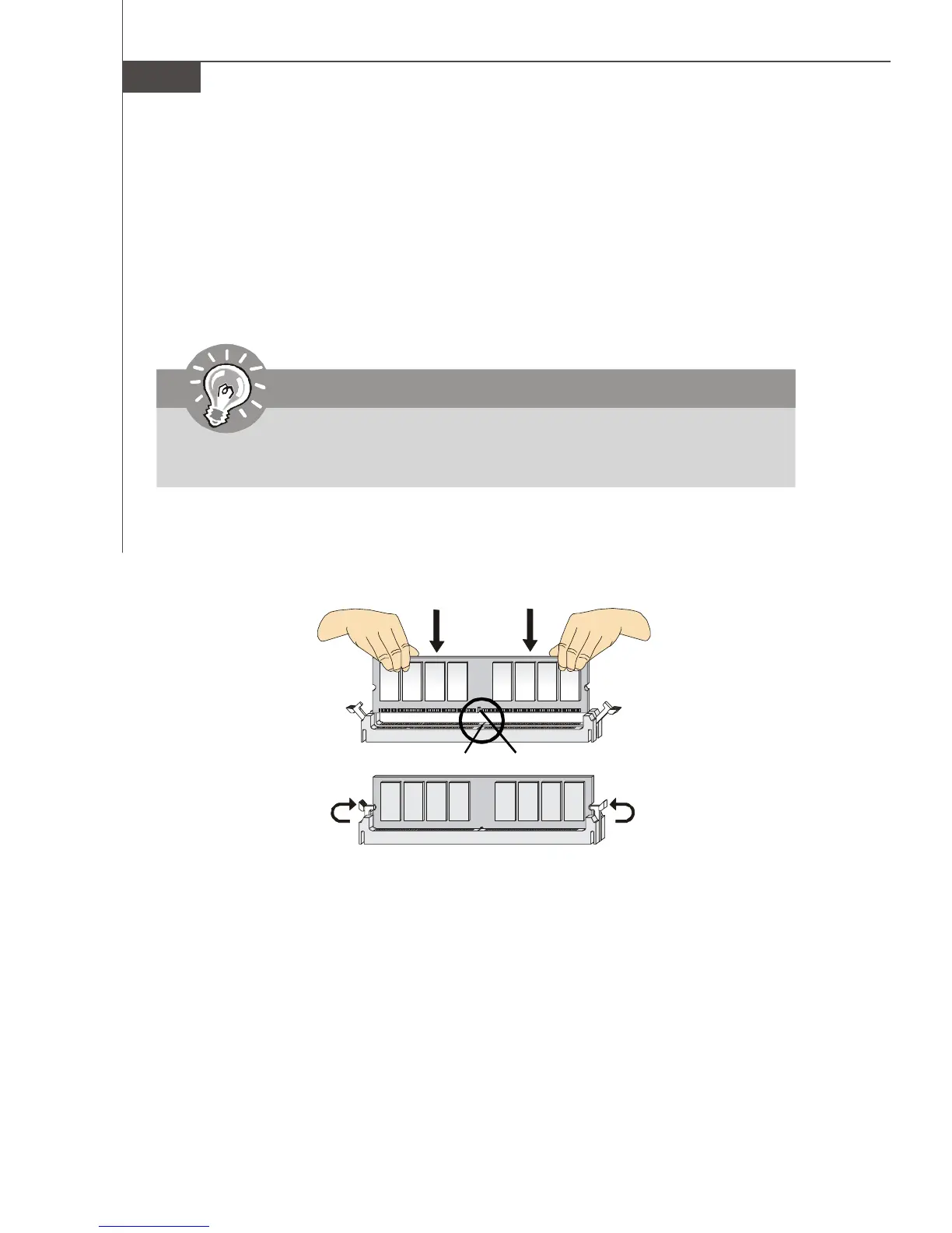 DDR2 or DDR3. Follow the procedures below to install the memory module properly.