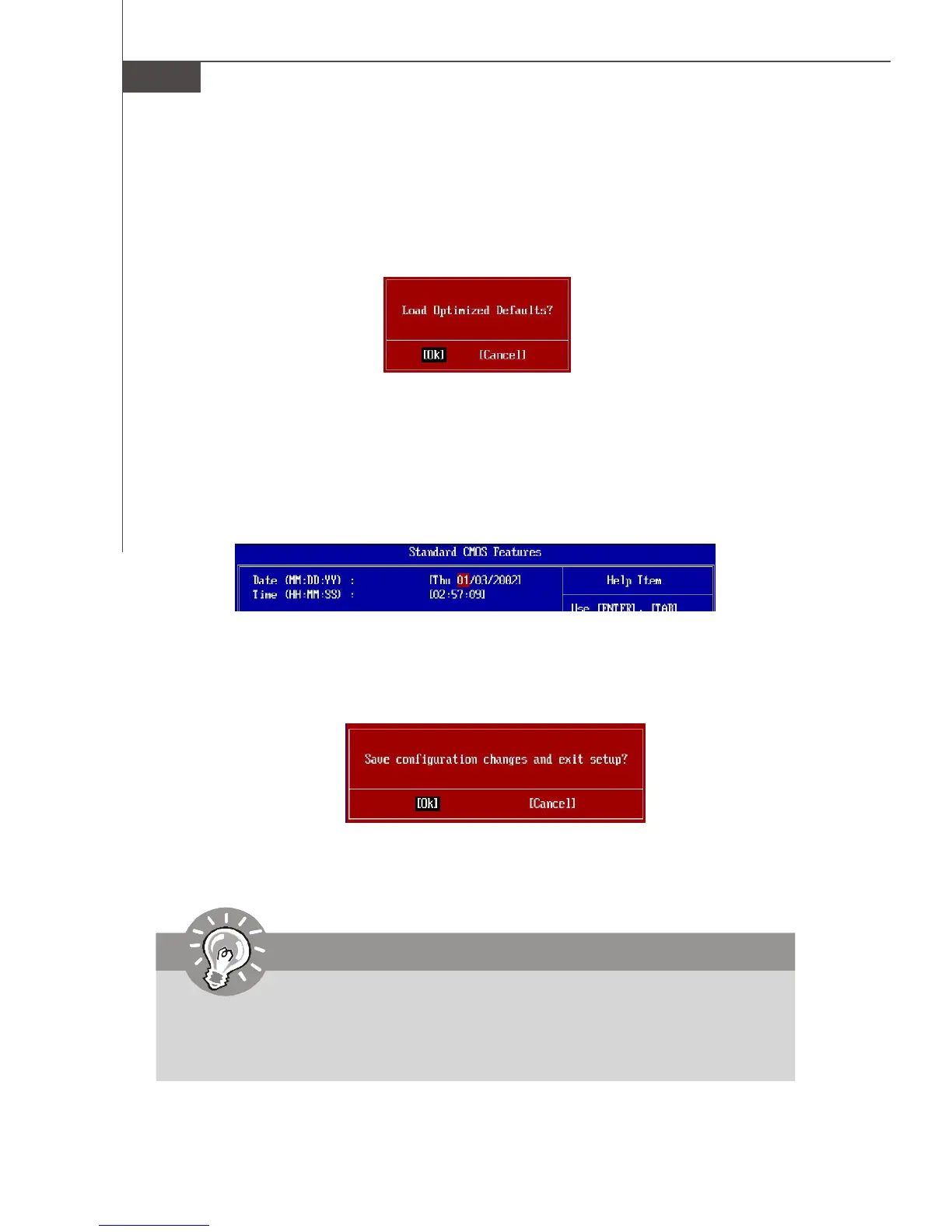 Drücken Sie [okay], um die Standardannahmen für optimale System Leistung zu