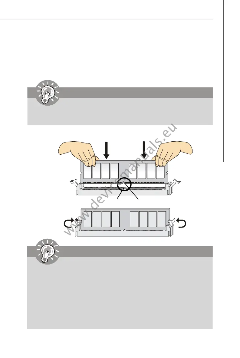 3. The plastic clip at each side of the DIMM slot will automatically close.