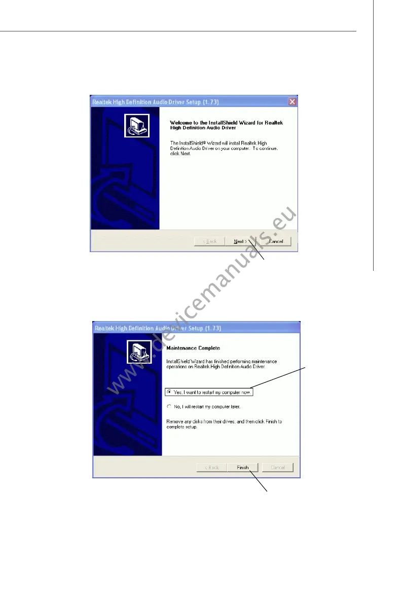 3. Click Next to install the Realtek High Definition Audio Driver.