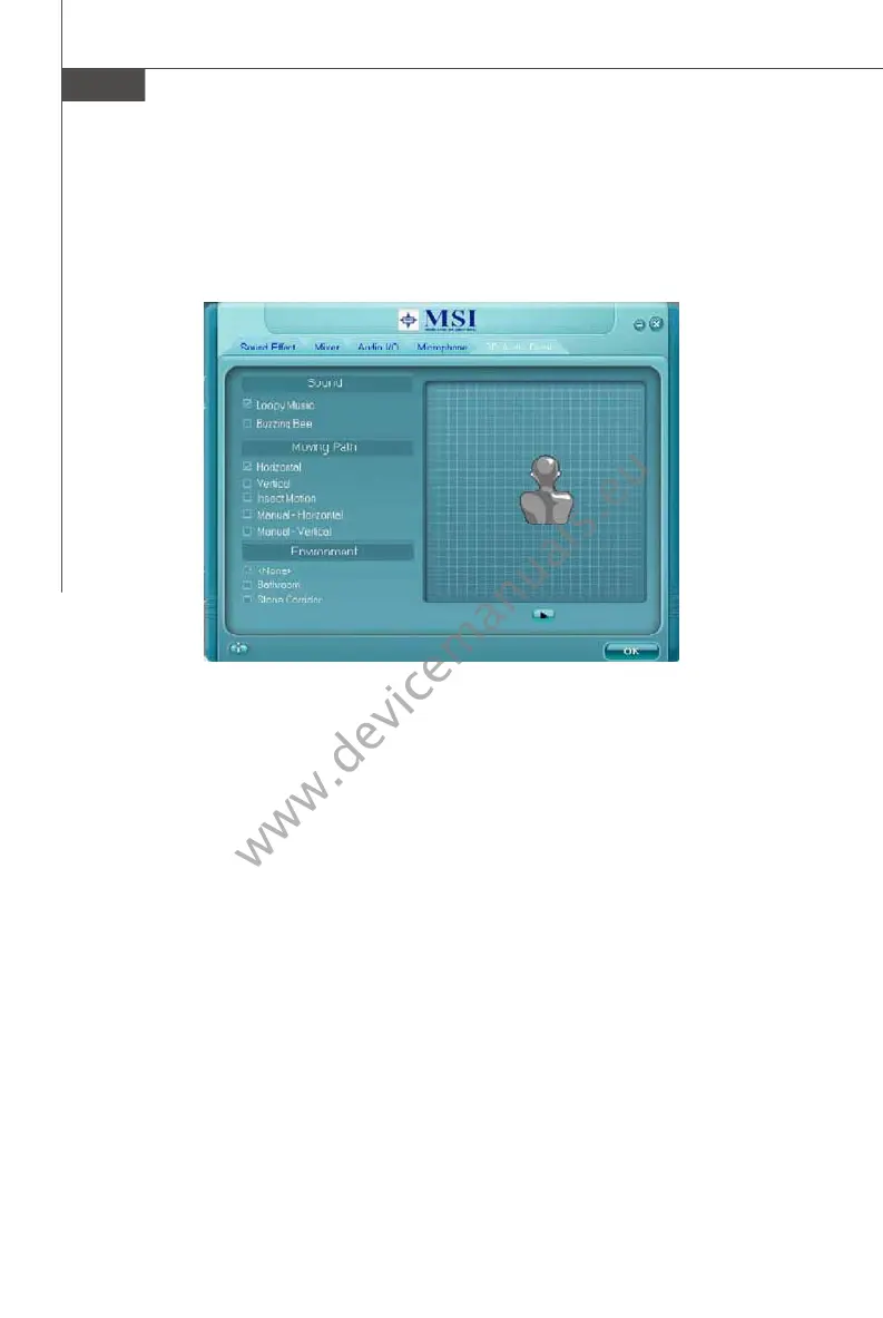 In this tab you may adjust your 3D positional audio before playing 3D audio applica-