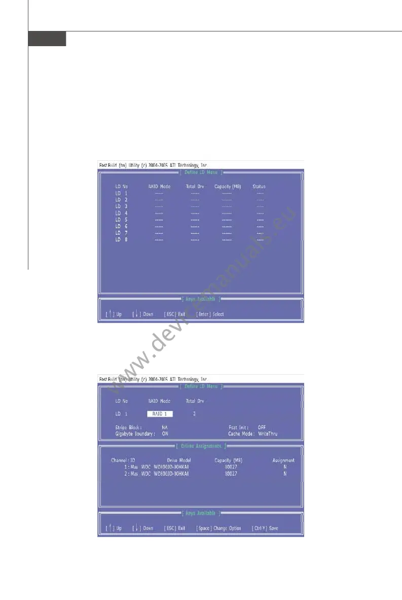 2. Press the arrow keys to highlight an logical drive number you want to define