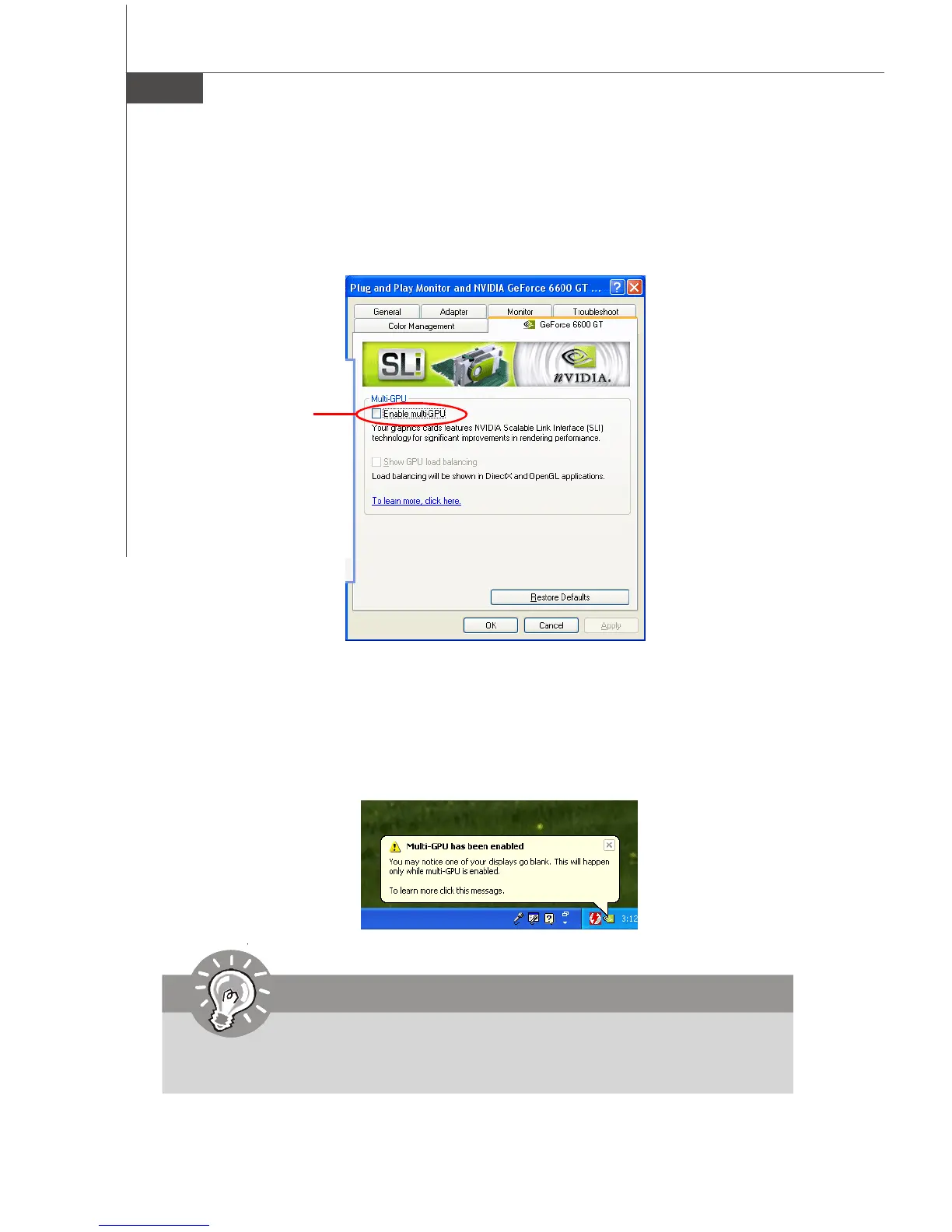 SLI driver/utility. A configuration panel will be provided for Multi-GPU control. Check