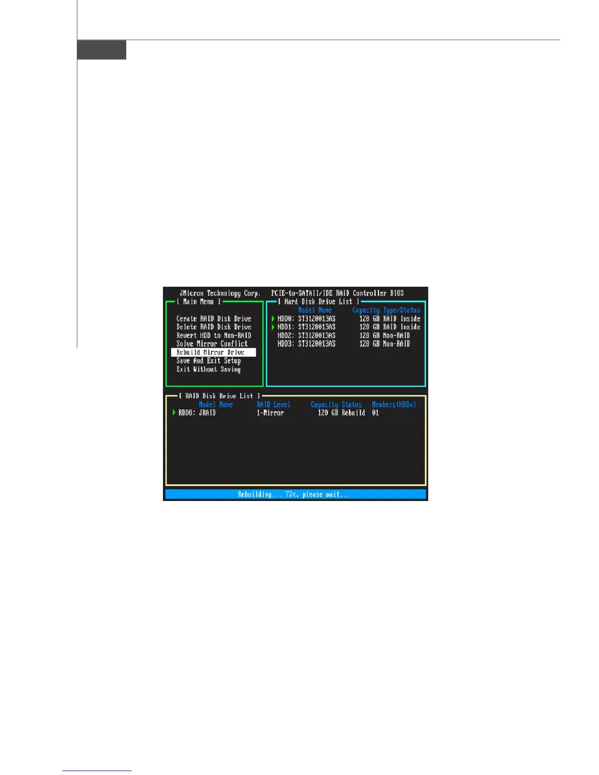 Select Rebuild Mirror Drive and press <Enter>. Using the <TAB>, move to the RAID