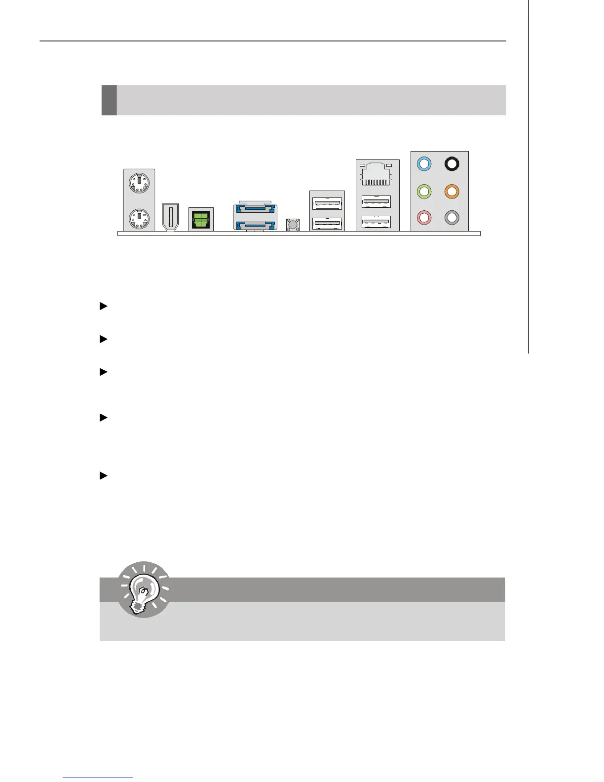 The IEEE1394 port on the back panel provides connection to IEEE1394 devices.