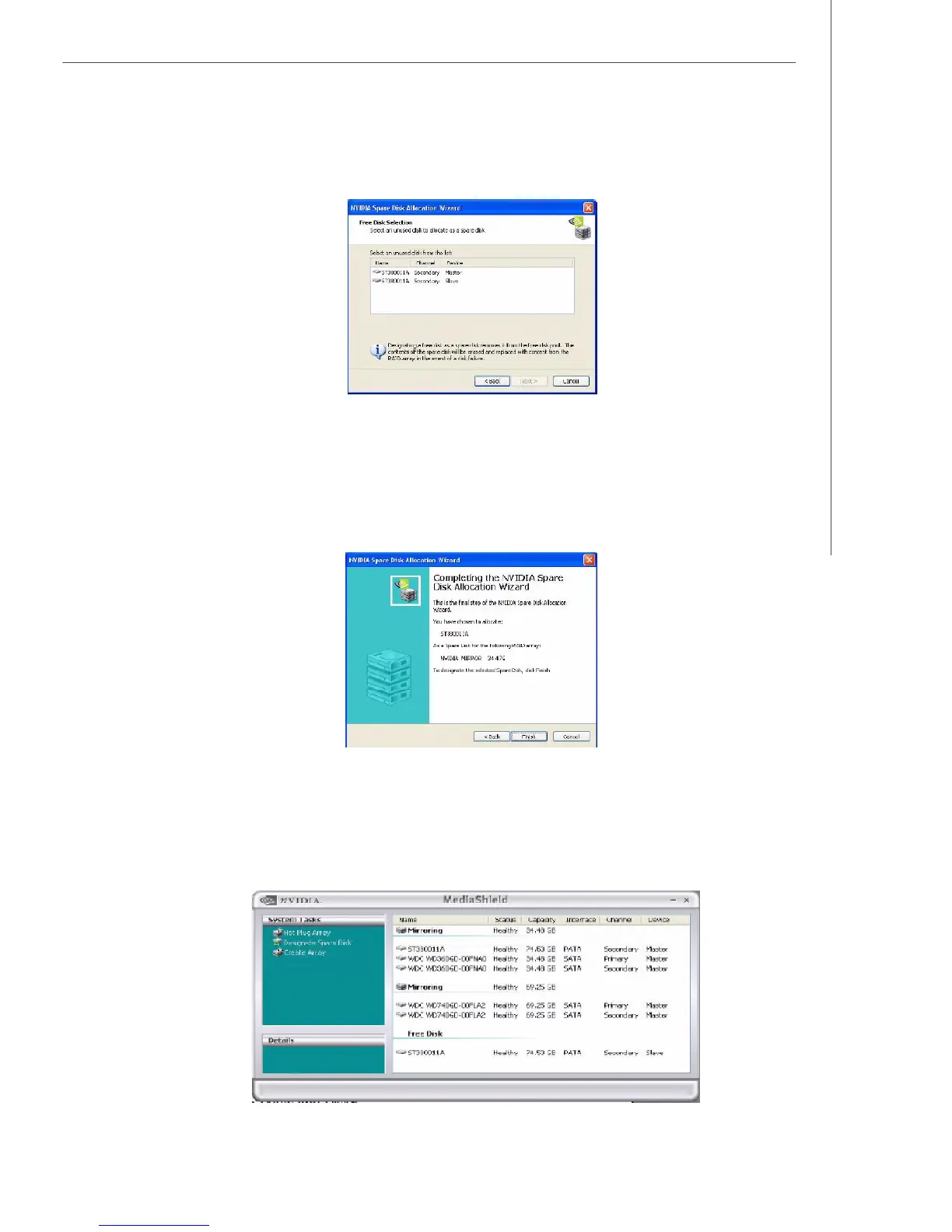 The Completing the NVIDIA Spare Disk Allocation page appears.