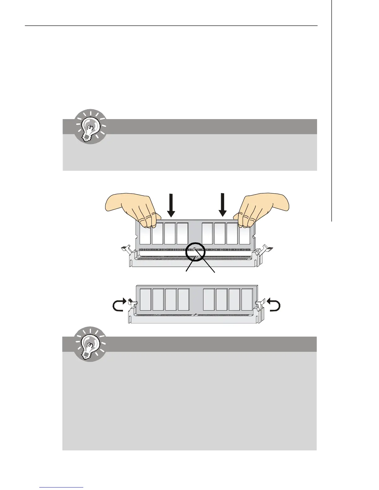 3. The plastic clip at each side of the DIMM slot will automatically close.
