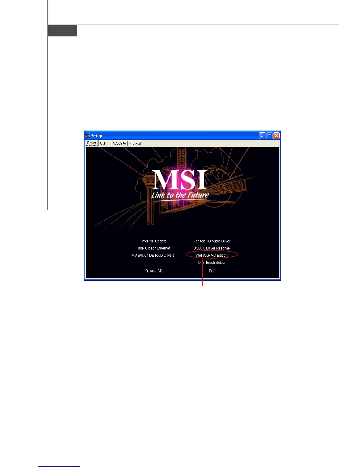 Insert the MSI CD and click on the Intel IAA RAID Edition to install the software.
