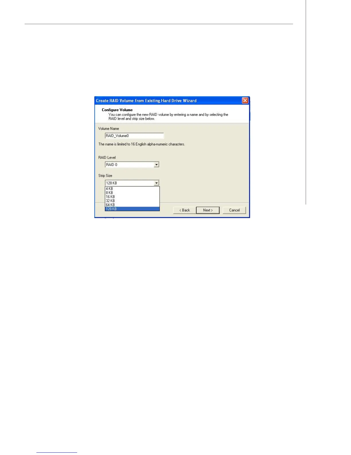 A desired RAID volume name needs to be typed in where the ‘RAID_Volume1’ text