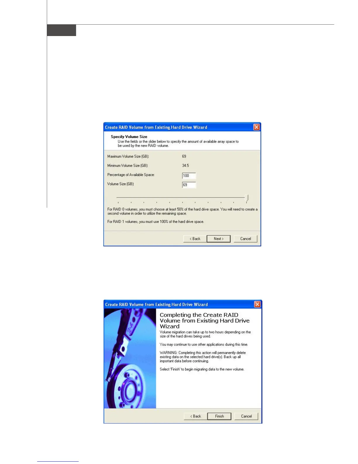 (5) Start Creating RAID Volume from Existing Hard Drive Wizard