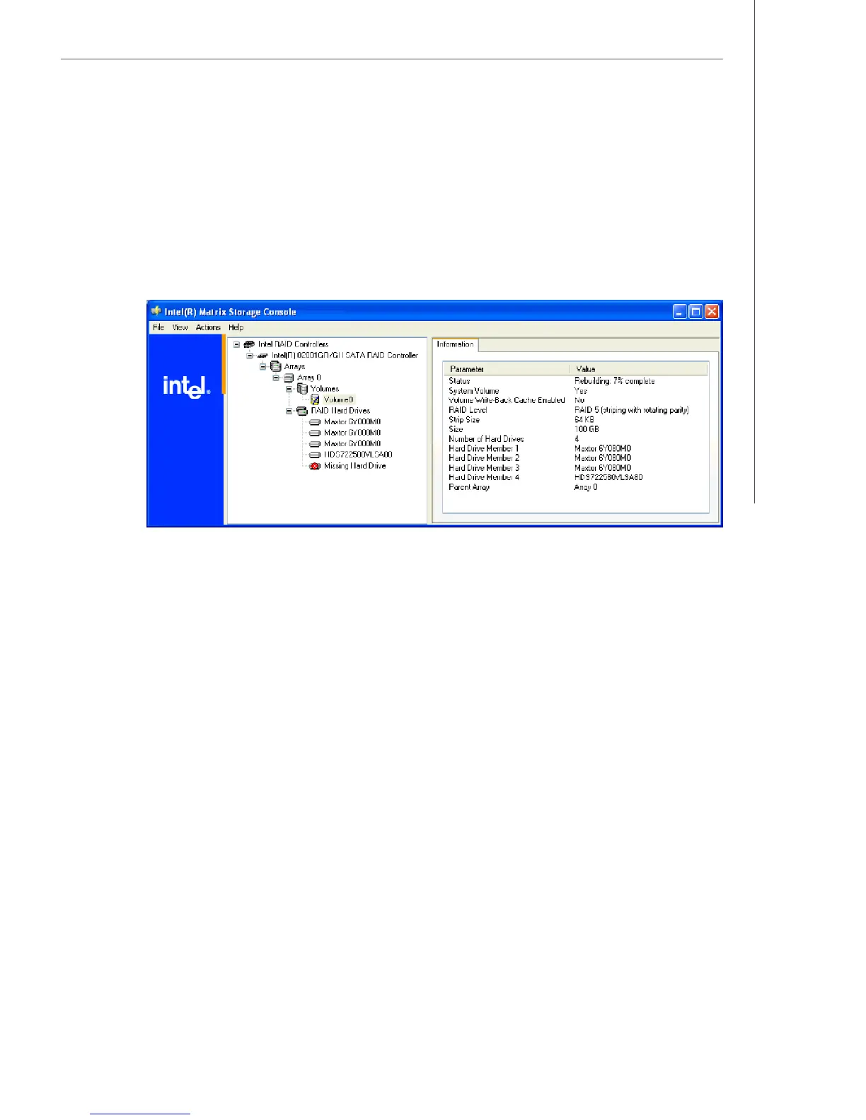 7. The Intel(R) Storage Utility will be launched. Right-click the new hard drive and