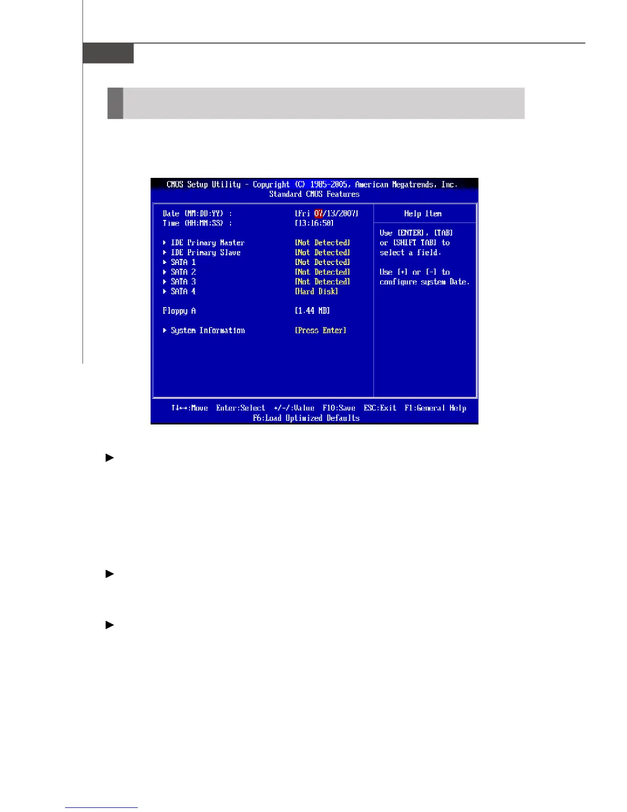 The items in Standard CMOS Features Menu includes some basic setup items. Use