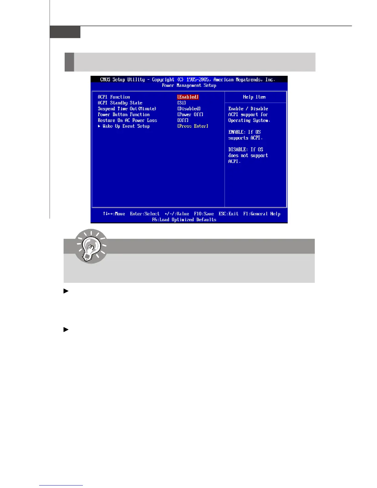 system supports ACPI, such as Windows 2000/ XP , you can choose to enter the