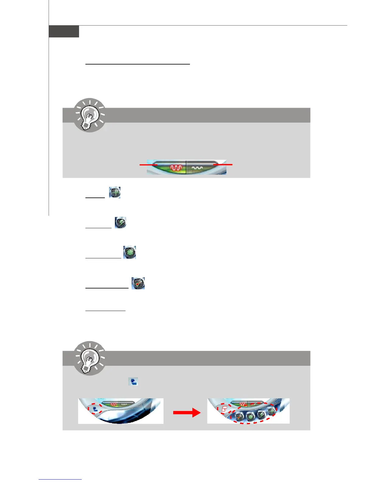 In this sub-menu, you can set the values of clock, voltage and fan speed by