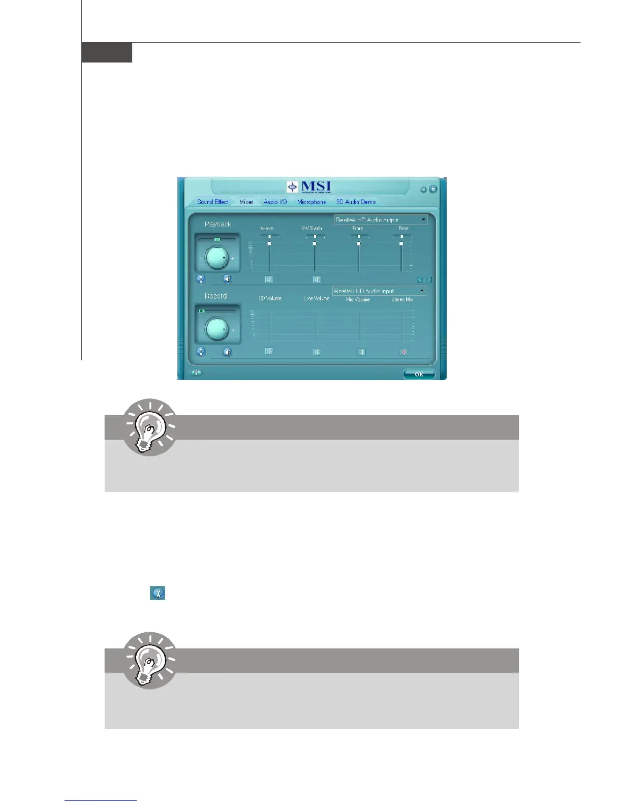 In the Mixer part, you may adjust the volumes of the rear and front panels individually.