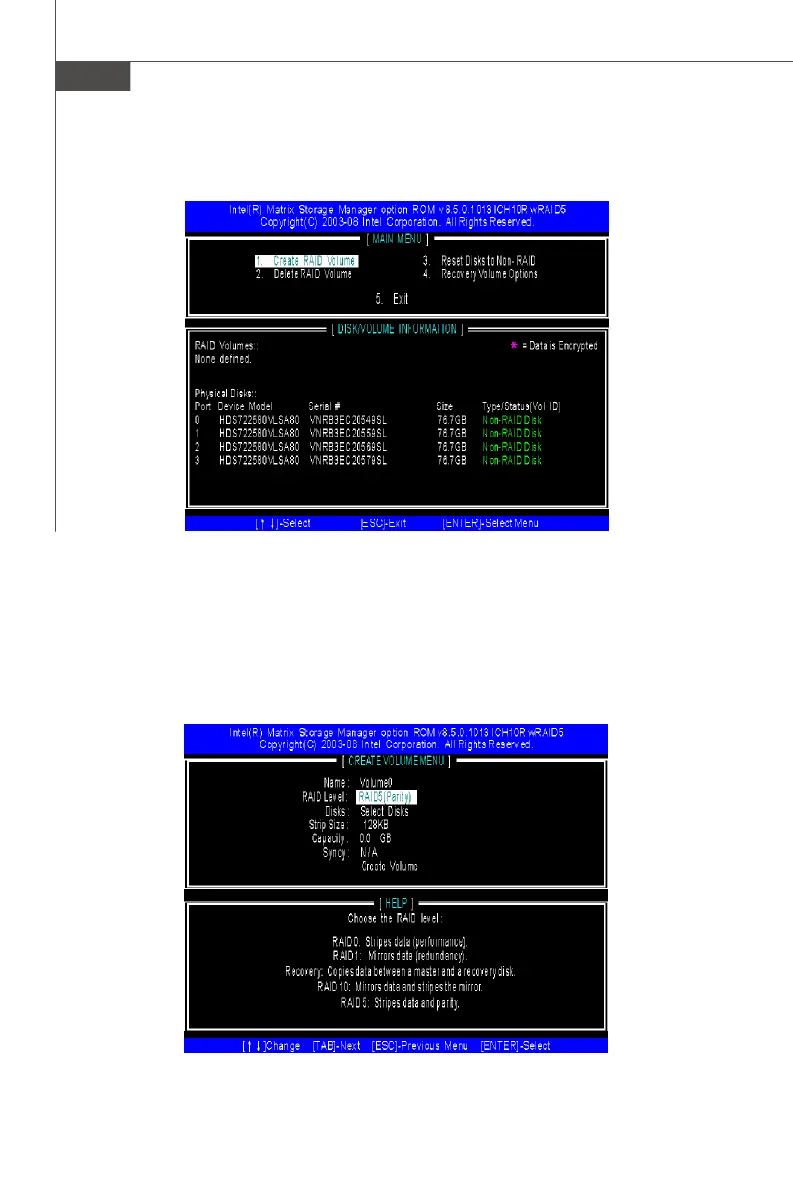 1. Select option 1 “Create RAID Volume” and press <Enter> key. The following