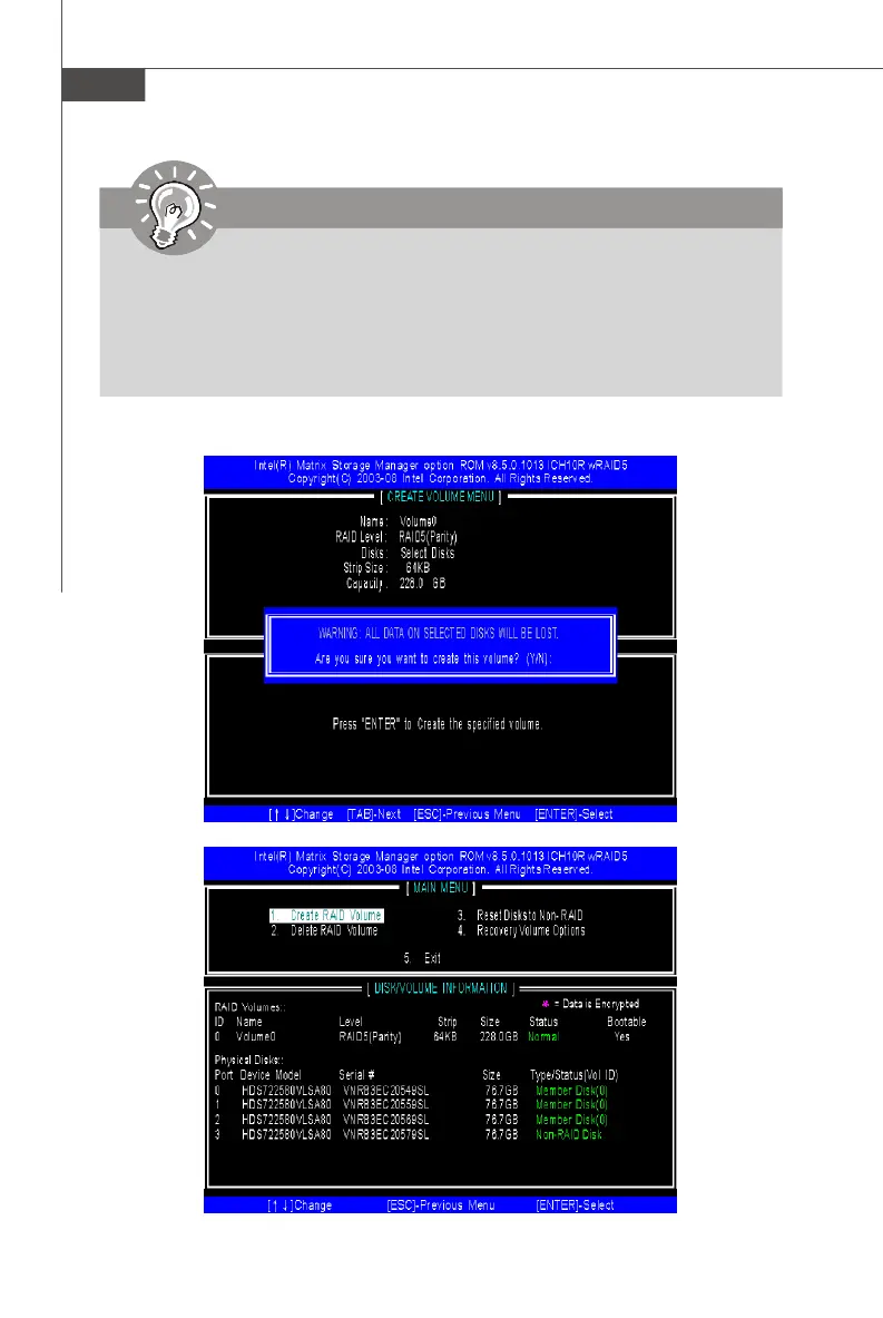 Since you want to create two volumes (Intel Matrix RAID Technology), this
