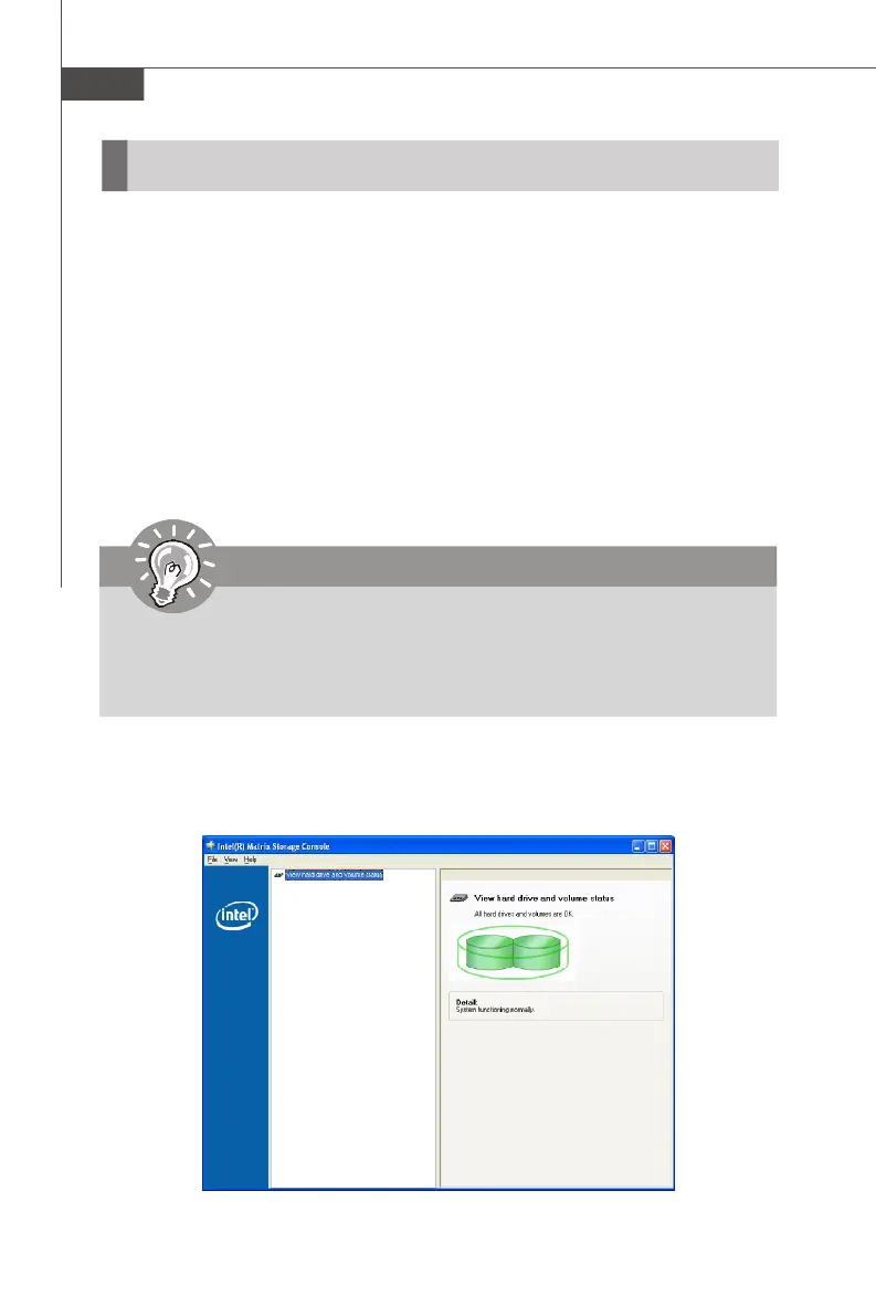 After the Intel Matrix Storage Console has been successfully installed and the sys-