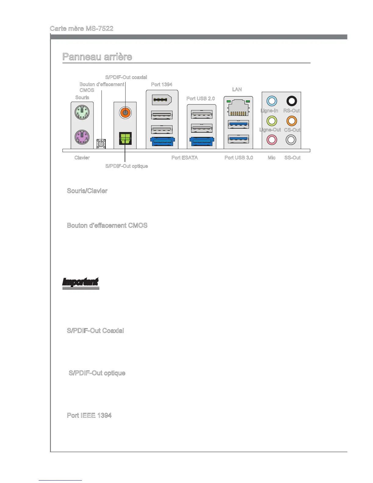 Le port IEEE1394 sur le panneau arrière fournit une connexion aux périphériques