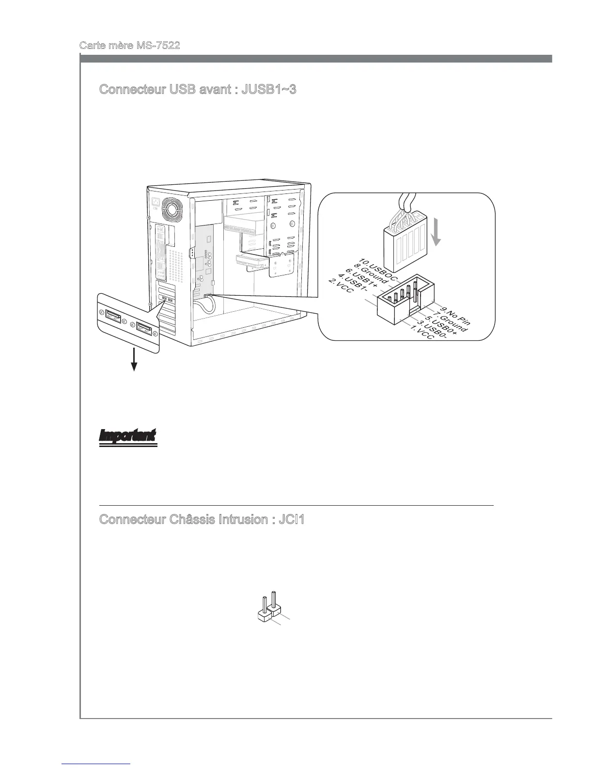 Connecteur USB avant : JUSB1~3