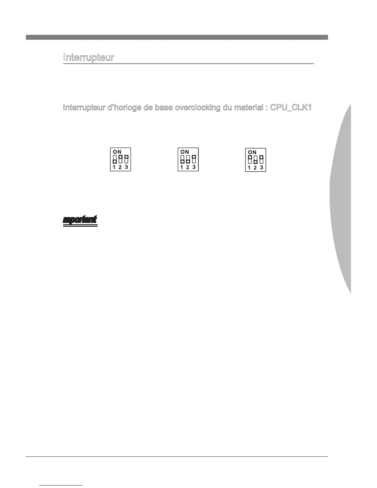 Interrupteur d’horloge de base overclocking du material : CPU_CLK1